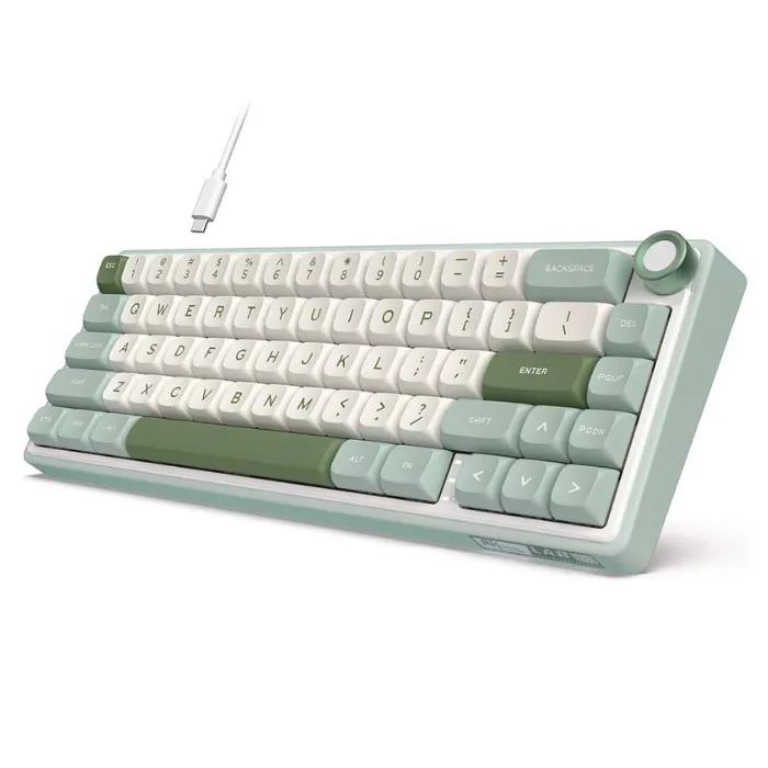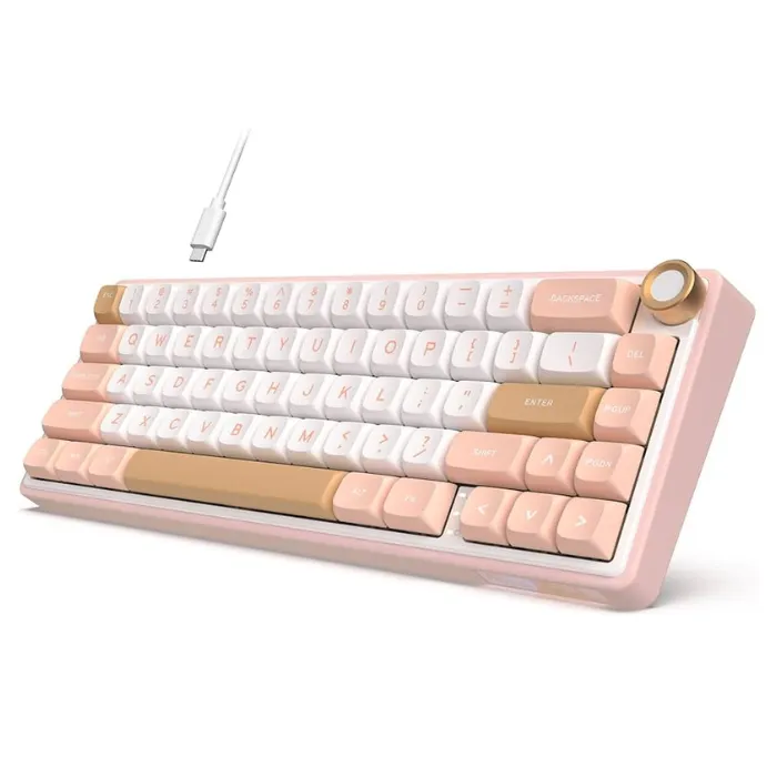 - Ultra-compact 65% layout (68 keys) – arrow keys + Del/Home/End/PgUp/PgDn included